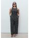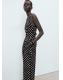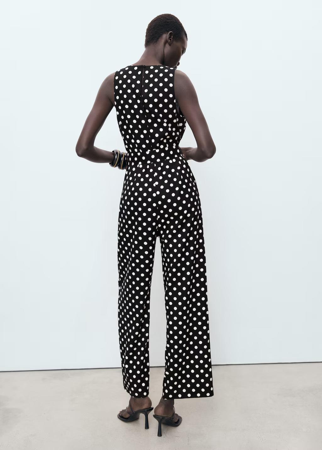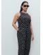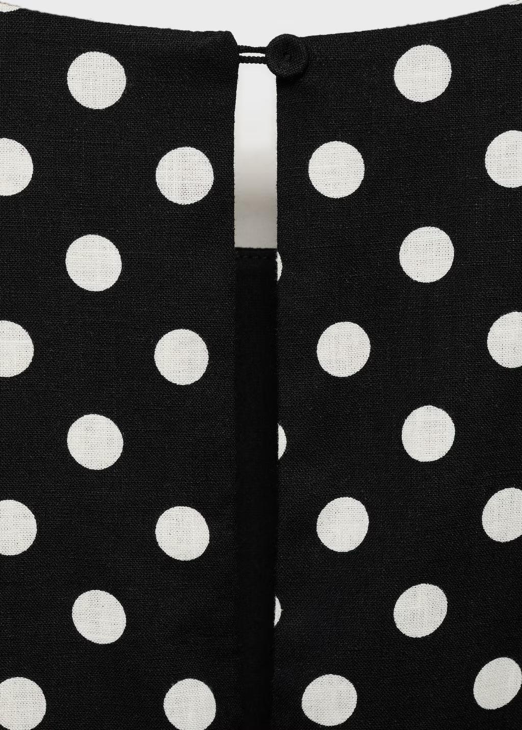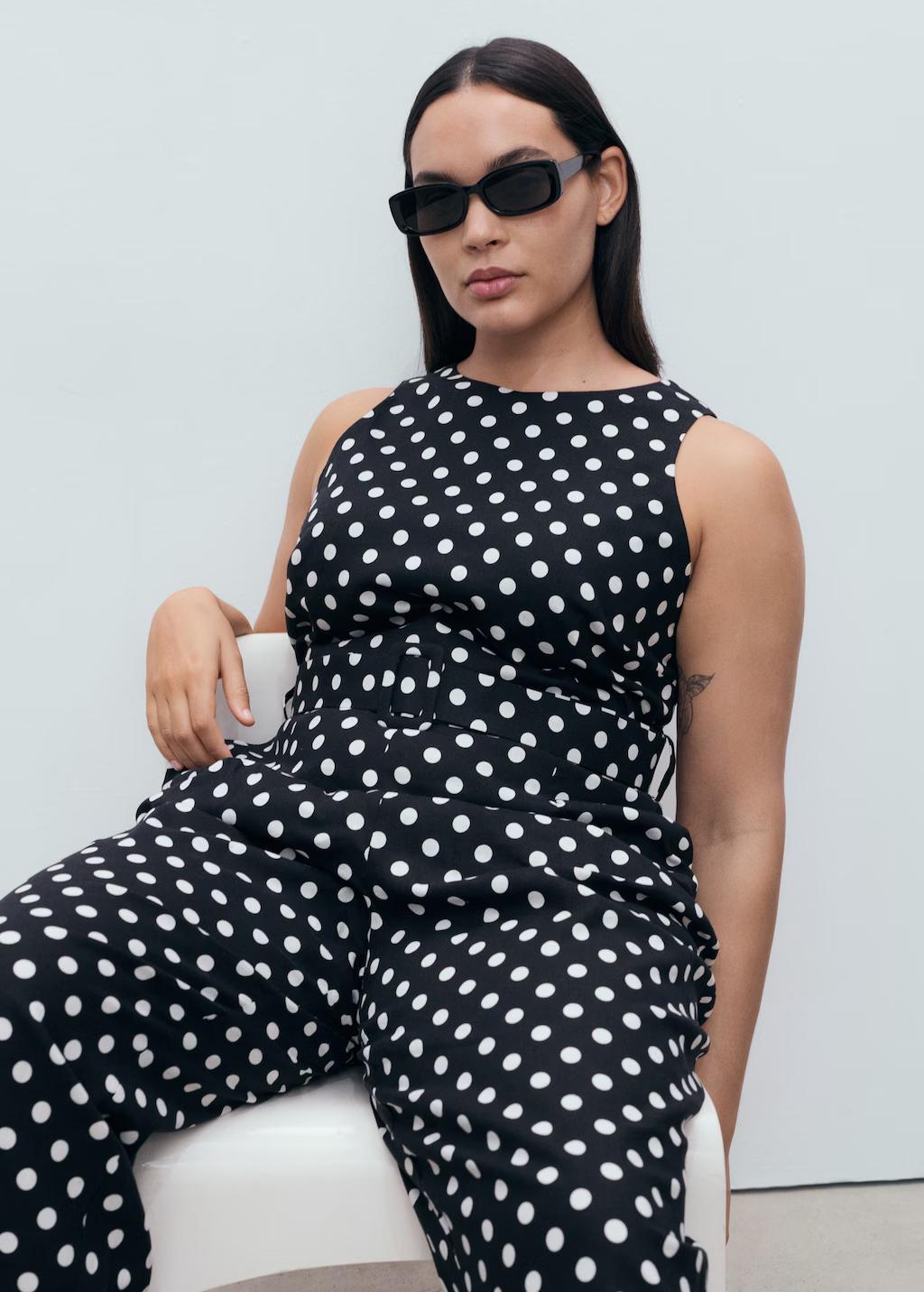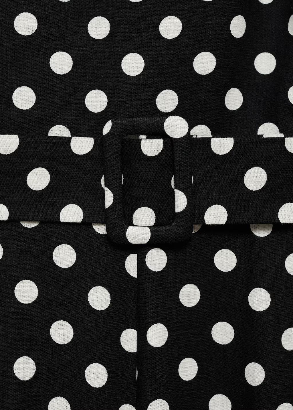 Tejido mezcla de lino. Diseño largo. Diseño recto. Estampado de lunares. Cuello redondo. Sin mangas. Tirantes anchos. Cinturón con cierre de hebilla. Cierre de botón en la parte posterior. Disponible Plus