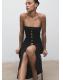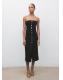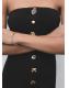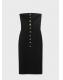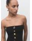 Tejido de punto fino. Diseño midi. Diseño entallado. Palabra de honor. Sin mangas. Abertura frontal en el bajo. Botones efecto joya. Cierre delantero con botones