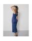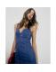 Blue Denim Plunge Neckline Bodycon Maxi Dress