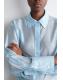 The COS womenswear team lean into the sheerness trend for the season ahead. This striking shirt is crafted from gauzy chiffon that shows subtle hints of skin and designed with a stepped hem that is slightly longer at the back. Style it with the matching skirt\u0026nbsp;for tone-on-tone hues.\u0026nbsp;Regular fitButton closureTENCEL\u0026trade; Lyocell is a regenerated wood-based fibre made from wood pulp. It is produced in a closed-loop process where chemicals are reused\u0026nbsp;Shell: 85% TENCEL\u0026trade; Lyocell, 15% Recycled polyester. Excluding trims / Machine wash\u0026nbsp;Back length of size EU 36 is 79cm / Model wears a size EU 36