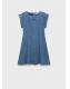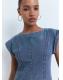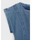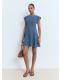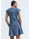 Tejido de algodón estilo tejano vaquero. Diseño corto. Diseño evasé. Cuello redondo. Manga corta con vuelta. Detalle costuras. Cierre de cremallera en la parte posterior
