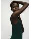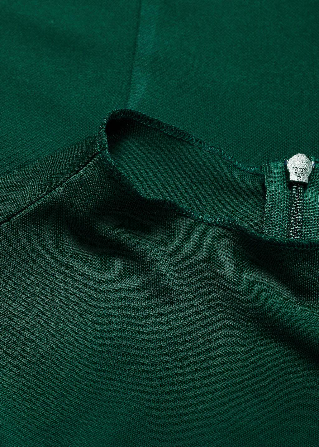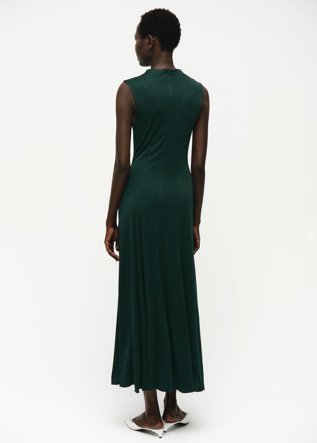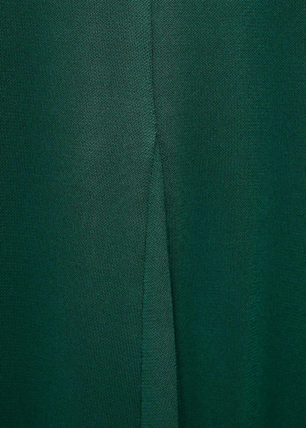 Diseño midi. Diseño evasé. Cuello perkins. Sin mangas. Tirantes anchos. Detalle godets. Cierre de cremallera en la parte posterior