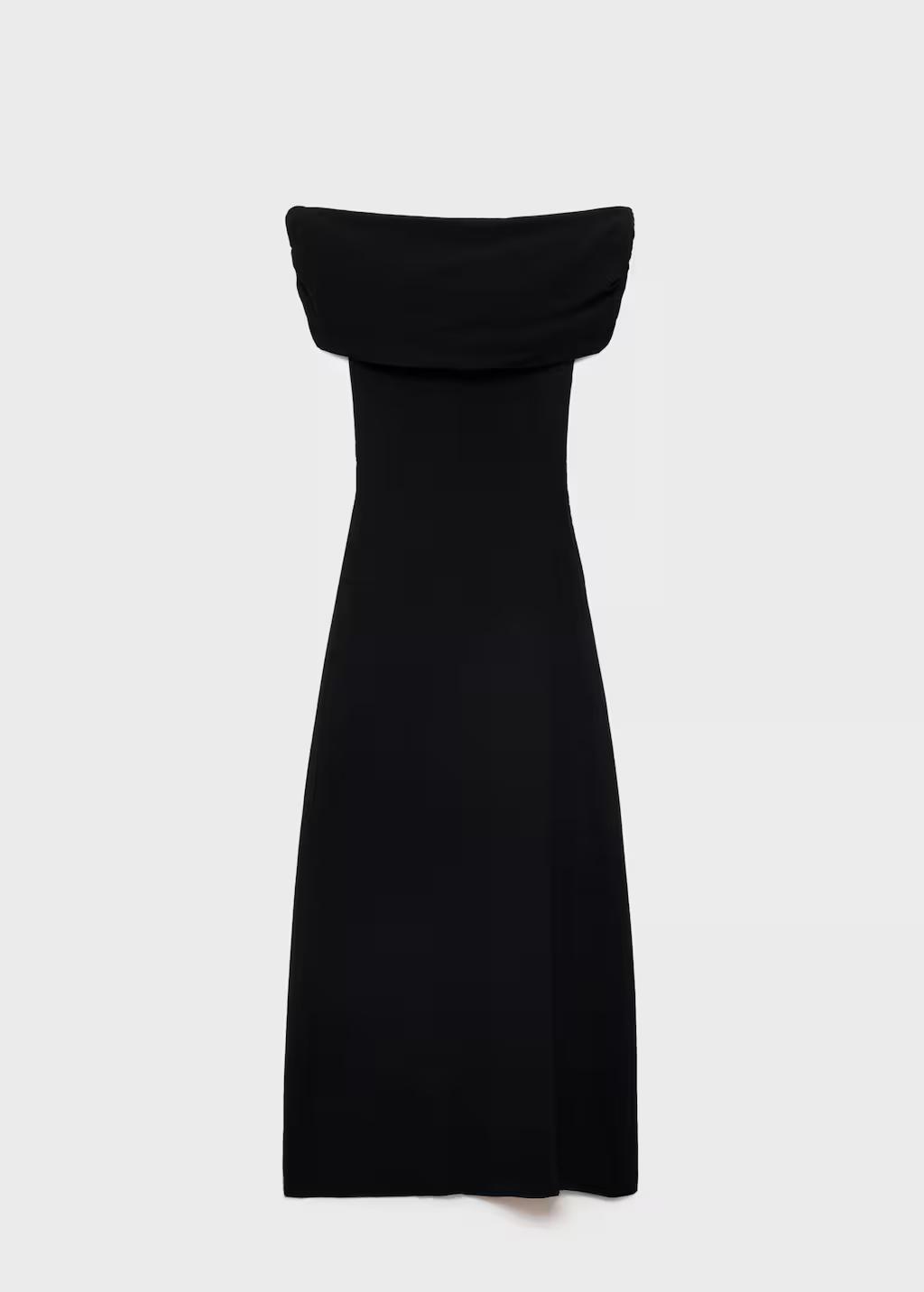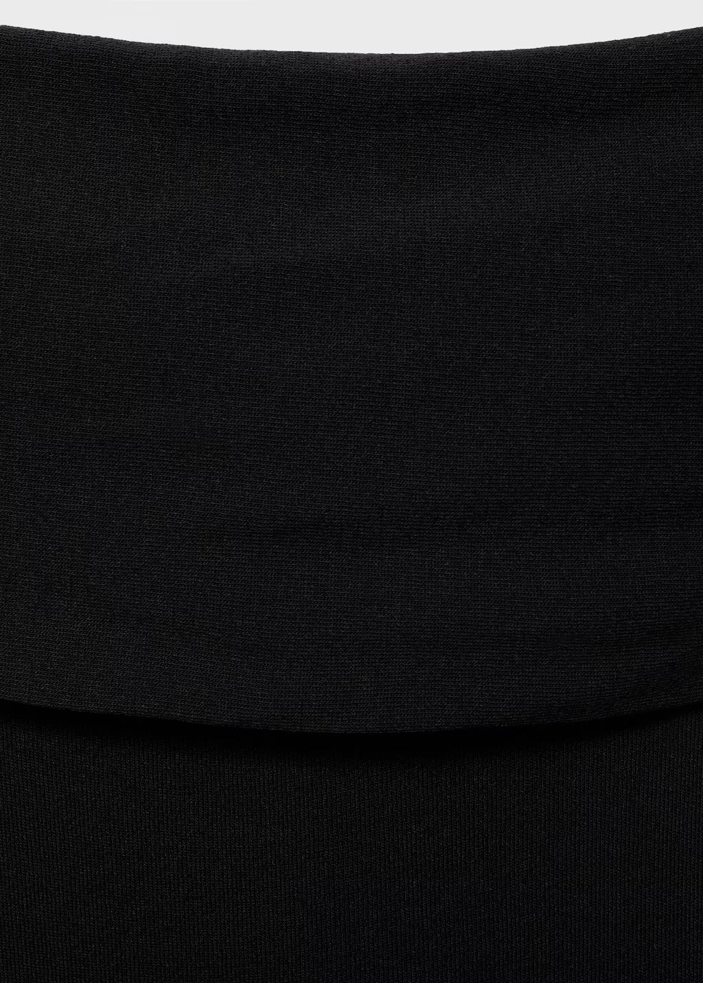 Tejido de punto fino. Diseño largo. Diseño entallado. Palabra de honor. Cuello drapeado. Sin mangas. Sin cierre