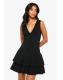 Dresses | Petite Bengaline Plunge Ruffle Hem Shift Mini Dress | boohoo