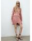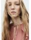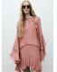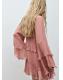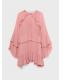 Tejido fluido. Diseño corto. Diseño oversize. Diseño volantes. Cuello redondo con tiras para lazo. Manga larga acampanada. Sin cierre