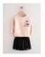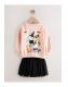 T-shirt 85% Cotton, 15% Recycled polyester. Skirt Main 100% Recycled polyester. Inner 92% Cotton, 8% Elastane.