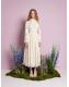 Elegant and ethereal, the Dandelion Midi Dress floats in delicate floral organza, capturing the light with every movement. With its high neckband, flared sleeves, and scalloped lace trim, this dress is the perfect blend of vintage charm and modern romance.