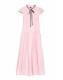 Soft as a whisper and as lovely as spring, the Primrose Ruffle Maxi Dress drapes in delicate baby pink with playful front splits and frills. The satin necktie and pearl gem buttons add a touch of elegance, making it the perfect dress for romantic strolls and special moments.
