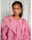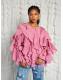 A poetic swirl of elegance, the Rosa Ruffle Blouse floats with every step. With cascading waterfall ruffles down the bodice and sleeves, it's made to dance-whether under moonlight or city lights. Pair the Azul Embellished Trousers and let the pink hues steal the spotlight.