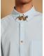 The Serpentine Penny Shirt balances simplicity with symbolic strength. Gold buttons add a touch of polish, while a removable gemstone snake brooch coils with meaning-an emblem of resilience, transformation, and quiet power. Pair with The Diego High-waisted Trousers for a sharp, effortless duo.