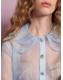 Delicate and dreamy, the Chicory Blouse floats in sheer blue organza, finished with a charming double collar and embroidered bow detail. Gemstone buttons add a soft shimmer, making it the perfect layer for light-filled days and elegant evenings. Complement with the Calla Jacquard Midi Skirt
