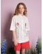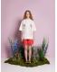 Bring a dash of floral flair to your wardrobe with the Field Gem Boxy Shirt. Featuring mirrored flower stems with pink and green gems, this white shirt combines crisp style with a botanical touch, making it your go-to for effortless spring/summer cool. Complete with the Chirp Scallop Shorts