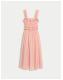 Square Neck Ruffle Midi Shirred Dress