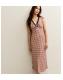 This brown check print midi dress is your go-to for simplistic style. Shaped with a flattering slim fit, its V-neckline is trimmed with contrasting black lace.