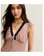 Design: check print, lace trim, tie detail