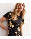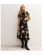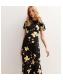Patterned with florals, this black midi dress features a tiered design and falls to a flattering A-line shape for a breezy summer-ready look.
