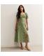 This polka dot midi dress in green offers a fresh take on casual wear. With its square neck and slit hem, it's perfect for wearing on sunny days.