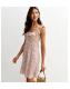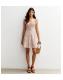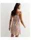 Featuring pink and green florals that lift the muted cream shade, this mini dress has frills framing the square neckline for a touch of volume, then neatly ties at the back.