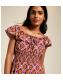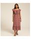 This yellow and red midi summer dress, with its eye-catching geometric print, will add a vibrant touch to your wardrobe. Style it to your desired drape off the shoulders.