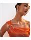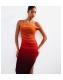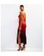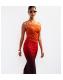 Design: ombre, gold-tone sculptural buckle detail, gathered, side slit
