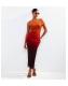 Stand out for all the right reasons with this figure hugging midi dress in an ombre mesh design. The off shoulder silhouette is enhanced by a sculptural gold-tone buckle detail.