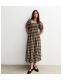 A check pattern brings easy-going charm to this seersucker midi dress. It's shaped with a square neckline and puff sleeves, then falls to a flared silhouette for a breezy, relaxed fit.