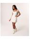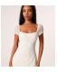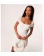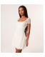 An easy pick for casual warm-weather days, this white and pink floral-print dress skims the body and falls to a thigh-baring length. A delicate lace-stitch trim outlines the square neckline.