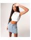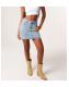 A wardrobe staple is given a sparkly update with this denim mini skirt from Pink Vanilla. With a fitted shape and mini length, it is detailed with rhinestone embellishments in a diamond pattern throughout.