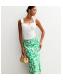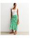 This green midi skirt is eye-catching for all the right reasons thanks to its flattering bias cut and contrasting white folk print.