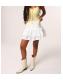 In airy ruffled layers, this white skirt by Pink Vanilla will keep you comfy on warm days. It has a comfortable shirred waist before flaring into voluminous tiers.