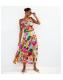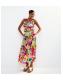 Design: tropical fruit print, side split hem