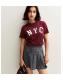 Add bold style to your t shirt collection with this NYC print option. The vibrant burgundy colour with contrasting white font is sure to make an impact.