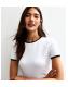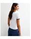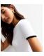 This white T-shirt is lent a subtle contrast with black trims highlighting the crew neck and short sleeves.