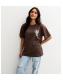 This dark brown crew neck t-shirt is a comfy staple for casual wardrobes. Its multicolour graphic print will add a fun touch to laidback weekend looks.