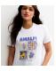 This white crew neck t-shirt is a go-to choice for casual days. It is punctuated by the multicolour graphic print to the front.