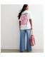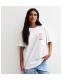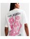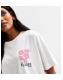 The 'Fleurs' print and flower illustrations at the chest of this white T-shirt echo the vibrant, bold design all over the back.