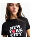 The 'New York City' lettering on the front of this black T-shirt features a red apple for a playful twist. Tuck it into jeans on casual days.
