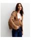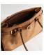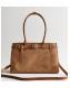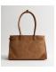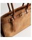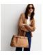 Smart and sleek in smooth faux suede, this tan tote bag is perfect for work or weekend outings. A versatile accessory, it has faux leather trims and a buckled strap.