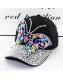 Hats | Denim Cap with Large Crystal Butterfly Accent | PEACH ACCESSORIES