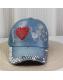 Hats | Denim Hat with Love Heart & Crystal Accents | PEACH ACCESSORIES