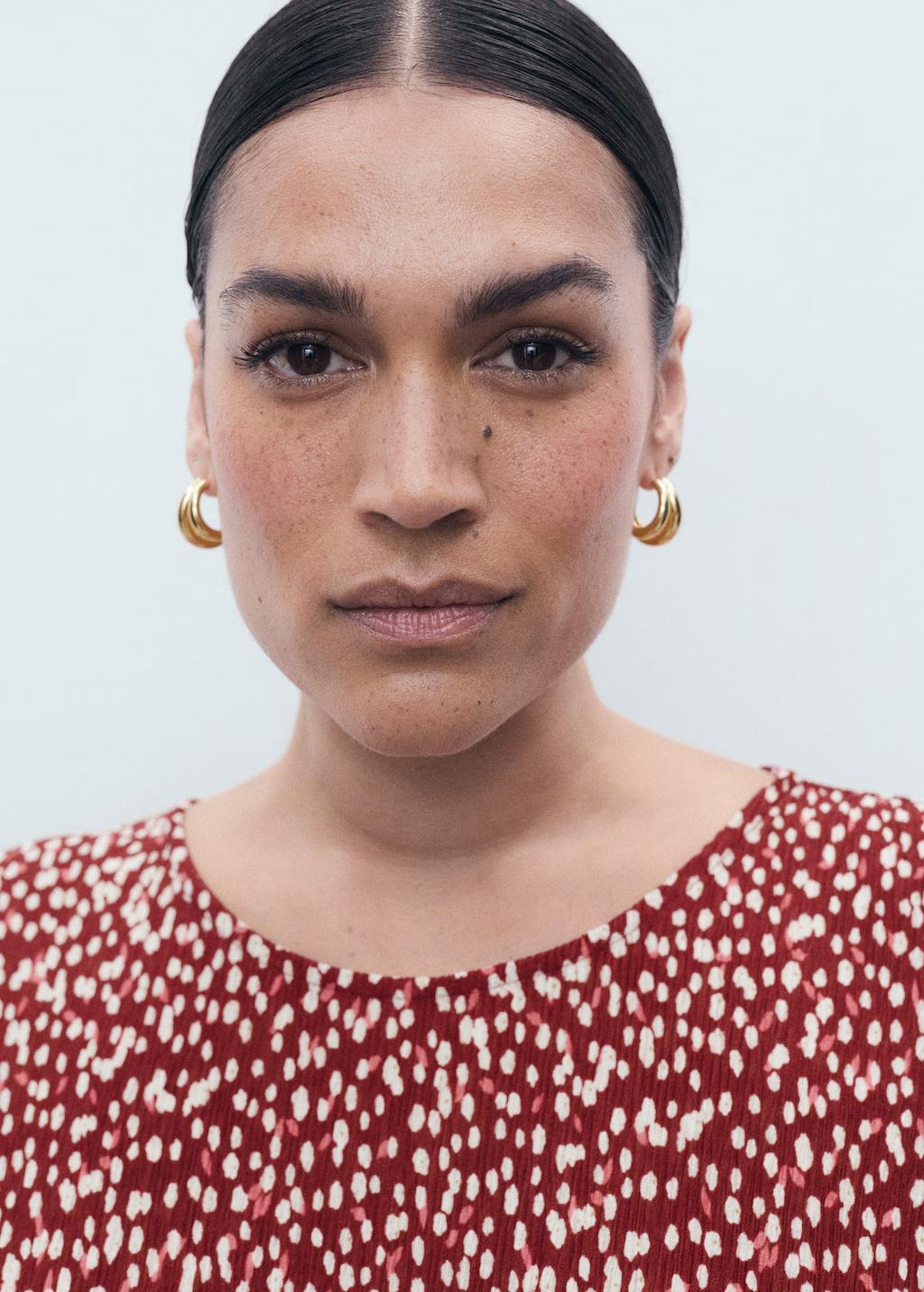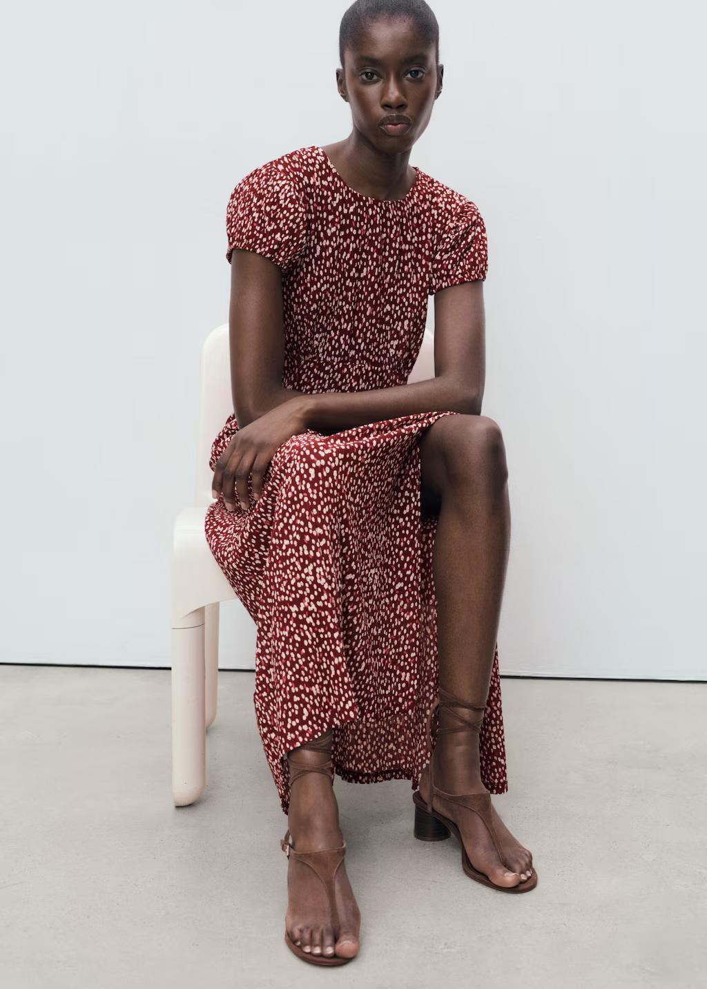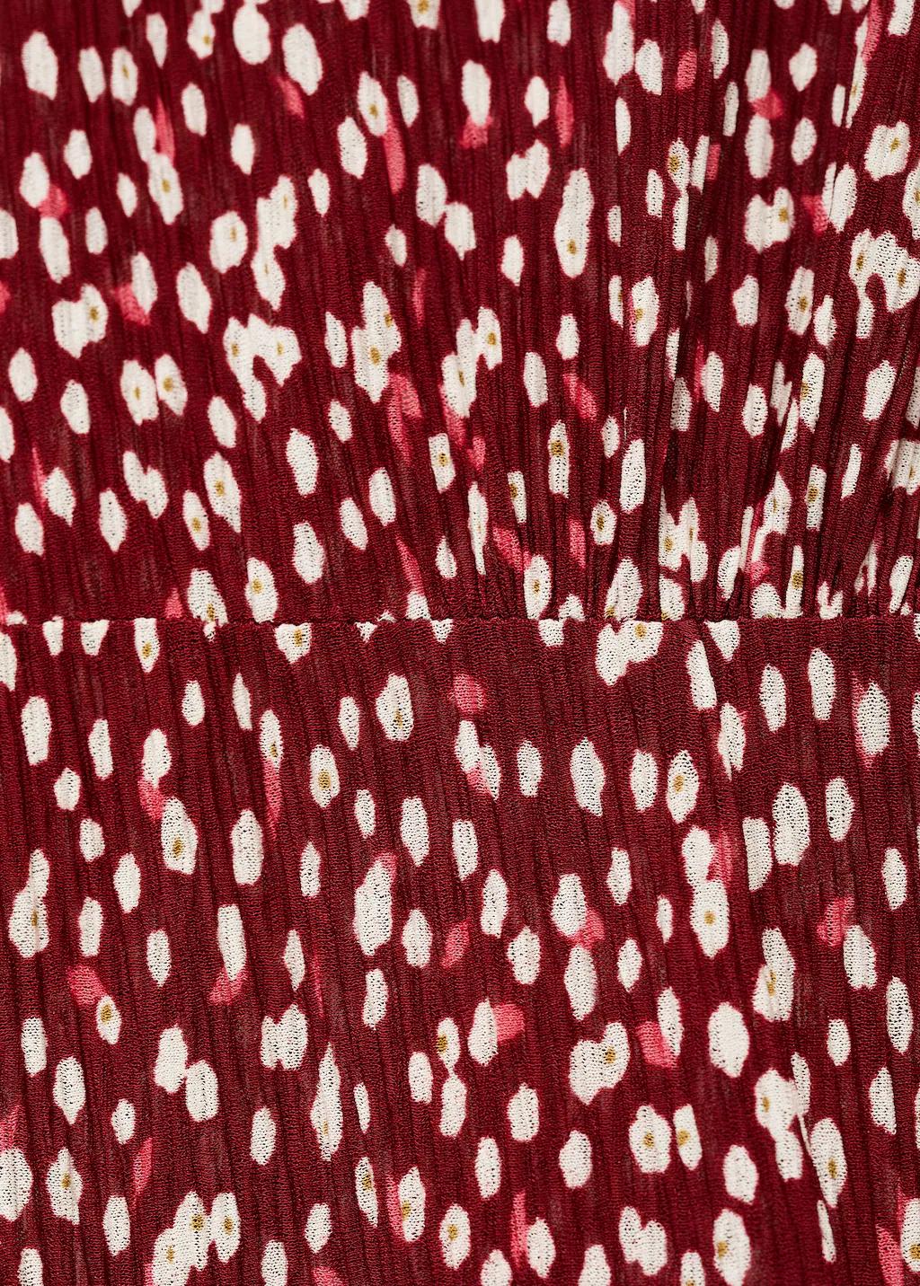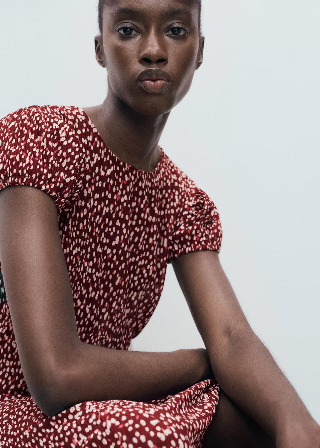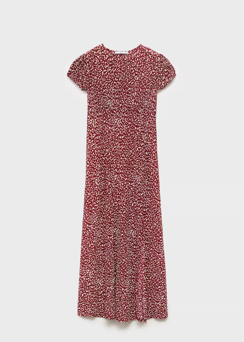 Diseño largo. Diseño recto. Diseño plisado. Estampado floral. Cuello redondo. Manga corta abullonada. Abertura lateral. Sin cierre. Disponible Plus