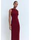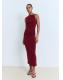 Diseño midi. Diseño entallado. Joya decorativa. Cuello caja. Sin mangas. Tirantes anchos. Detalle drapeado. Sin cierre