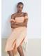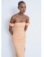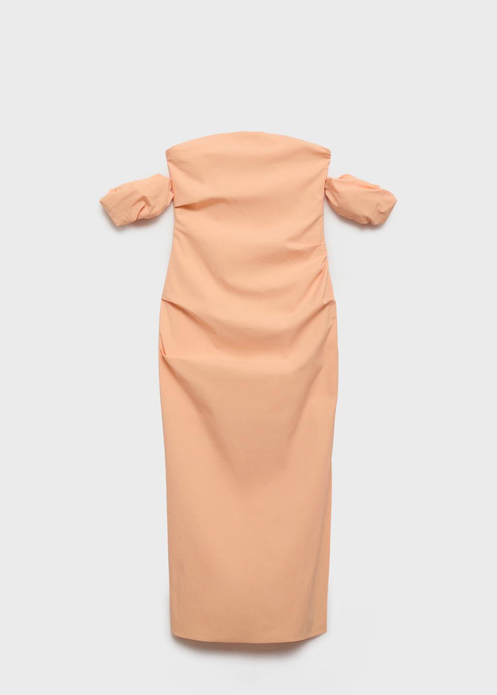 Tejido de algodón. Diseño midi. Diseño entallado. Palabra de honor. Manga corta abullonada. Abertura lateral. Cierre de cremallera lateral