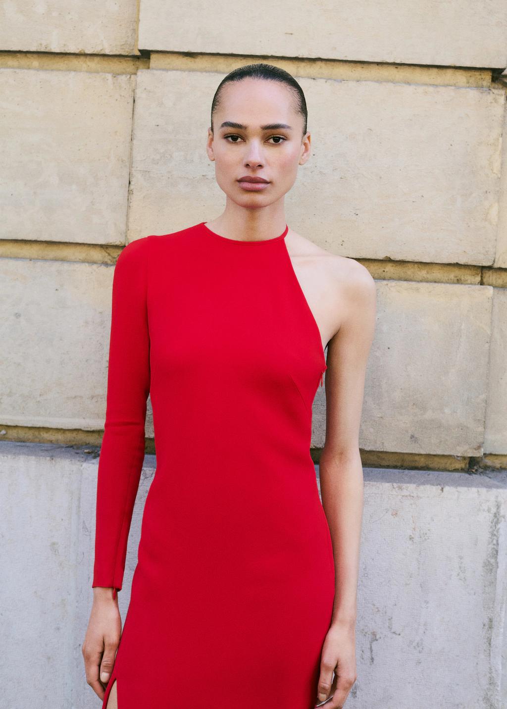 Este vestido es una declaración de estilo contemporáneo, con un escote asimétrico que aporta un toque audaz y moderno. La manga larga añade un elemento de sofisticación y elegancia, mientras que la espalda asimétrica completa el diseño con un giro inesperado y atractivo. Es una opción ideal para quienes desean destacar con un look único y actual. Diseño entallado. Diseño largo. Cuello asimétrico. Manga larga con cremallera. Abertura lateral en el bajo. Cierre de botón en el cuello. Cierre de cremallera lateral. Forro interior. Los artículos de la colección CAPSULE se pueden cambiar o devolver en un plazo de 14 días desde la fecha de envío. Esta prenda pertenece a nuestra colección de evento, diseñada para convertirte en la invitada perfecta en cualquier fiesta, boda o ceremonia. Capsule: una colección de prendas de edición limitada, hechas con los mejores tejidos y los máximos cuidados en el patronaje, para conseguir los mejores acabados. Esta colección, de carácter exclusivo, está pensada para los eventos y ocasiones más especiales