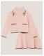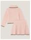 90s style for the new generation. Pretty and polished, this cable knit set includes a collared cardigan and swishy skirt, both showcasing a baby pink colour with black scallop trimmings. The best thing? The collar is embellished with glitzy bows for a sparkling finish. Pink