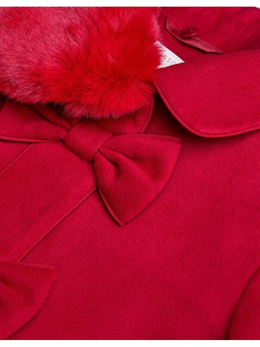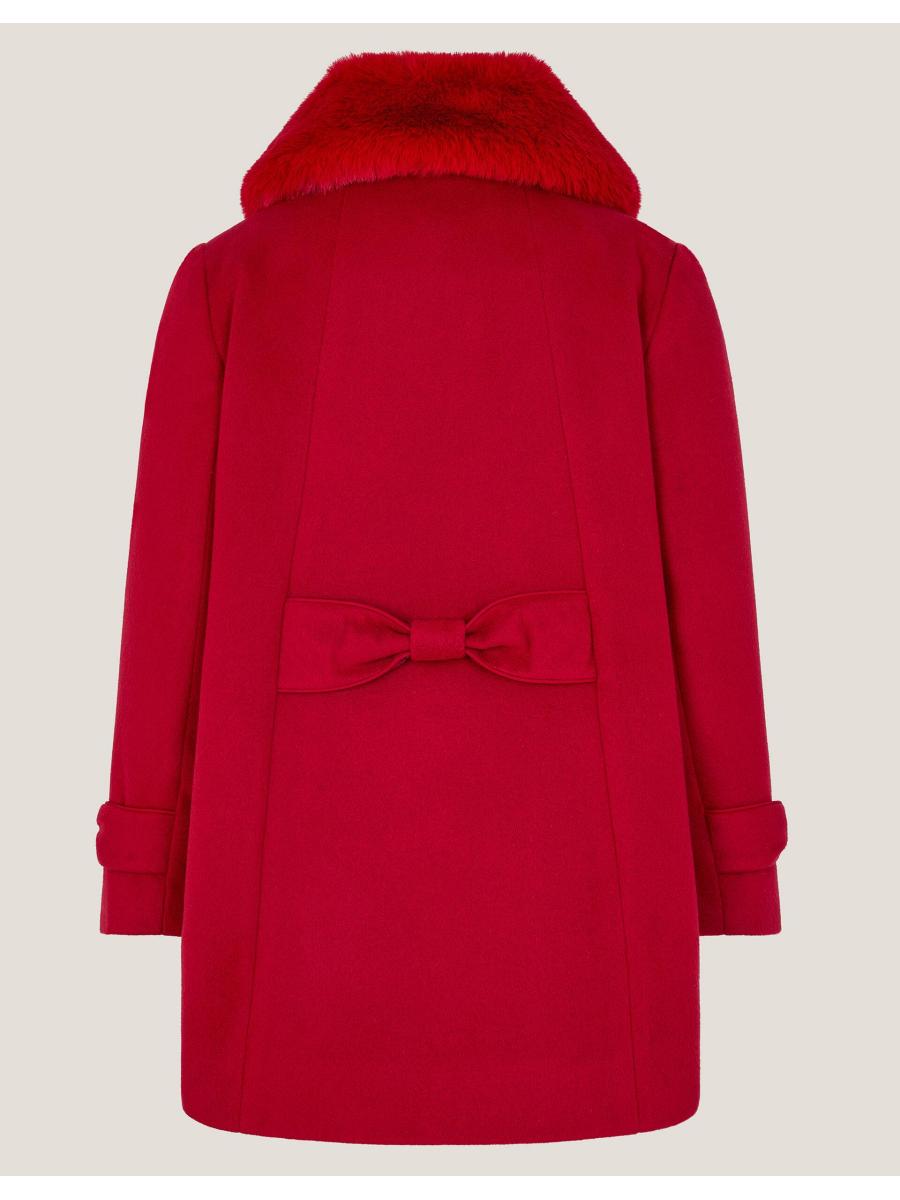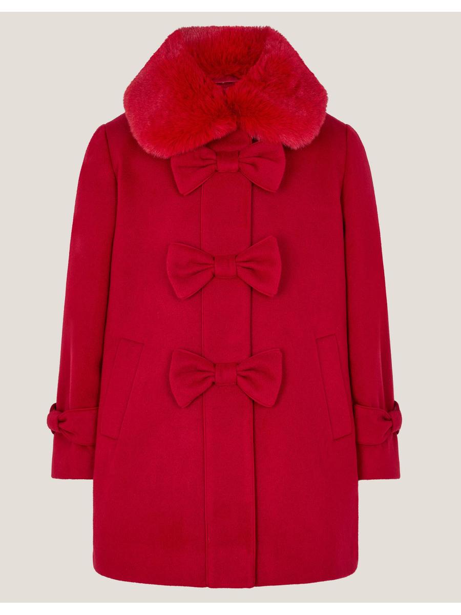 Bow-tiful. Smart and stylish in equal measure, this coat is soaked in a striking red colour with a detachable faux fur collar and three big bows through the front. Finished with button fastenings and side pockets. Red