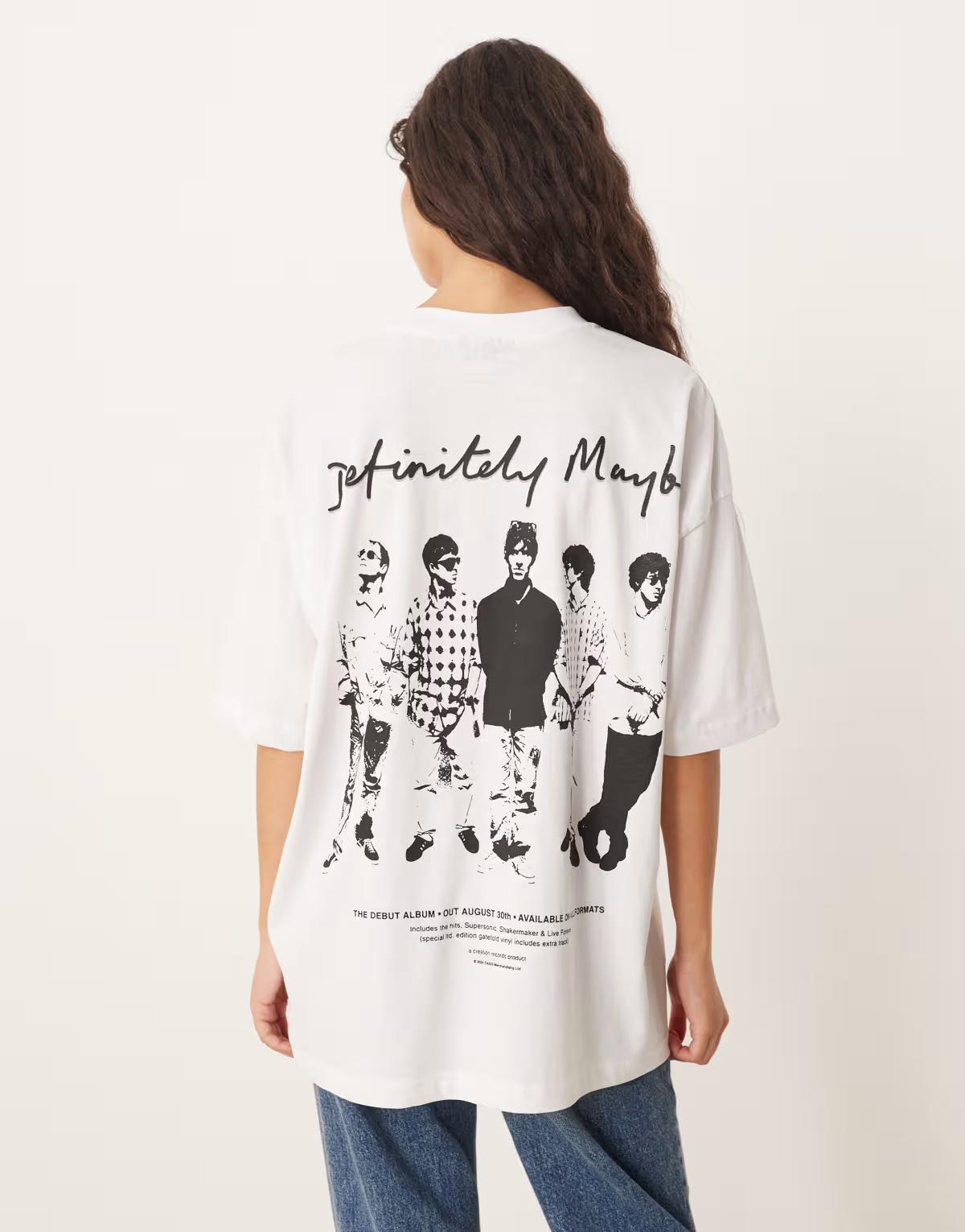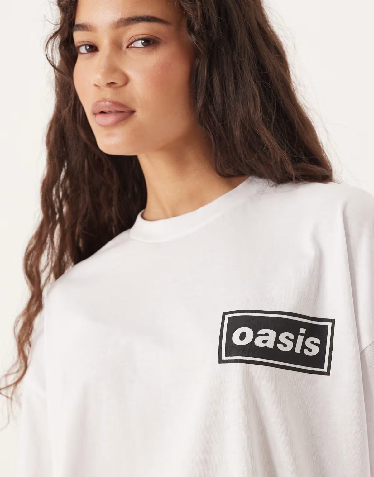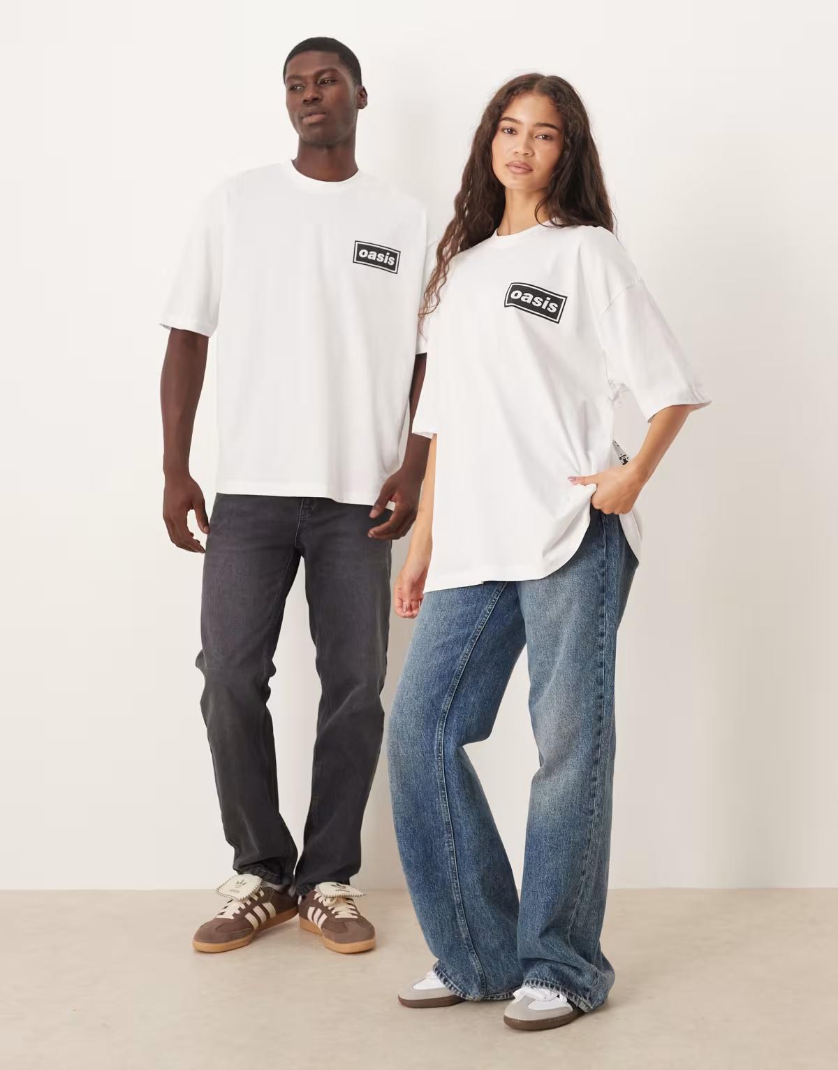 ASOS DESIGN unisex oversized t-shirt with OASIS Definitely Maybe prints in white