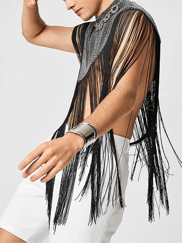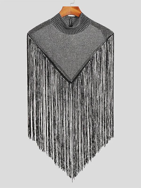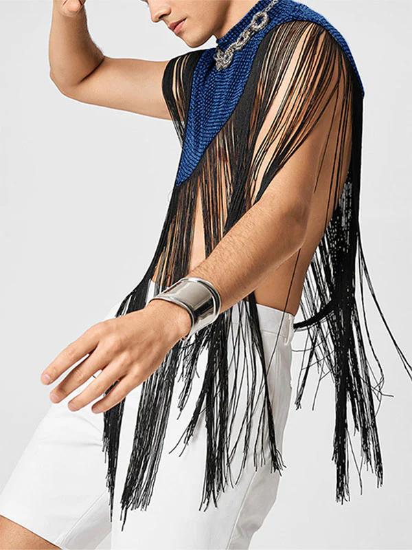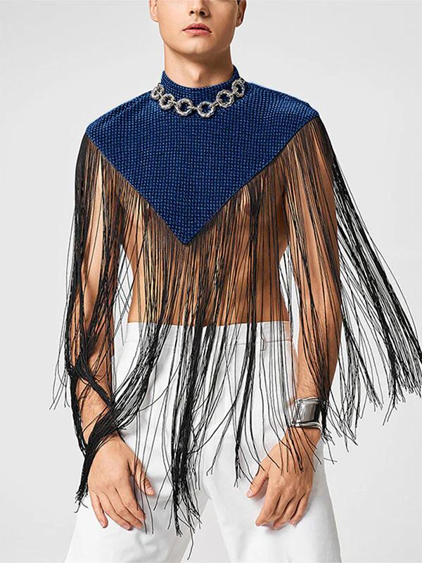 Men's Tassel Patchwork Cropped Cloak SKUL22782