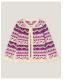 Patterned perfection! Showcasing a decorative fair isle design with pink roses and little love hearts in pink and purple colours, this frilly cardigan is a joyful addition to their knitwear collection. Stitched with a super-soft blend, it fastens with a singular button at the round neckline. Pink