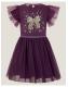 Take a bow! Designed in a rich purple hue, this dress is perfect for special occasions. Decorated with a statement bow embellishment on the bodice, it's complemented by an A-line tulle skirt featuring a sparkly waistband. Finished with ruffle sleeves. Purple